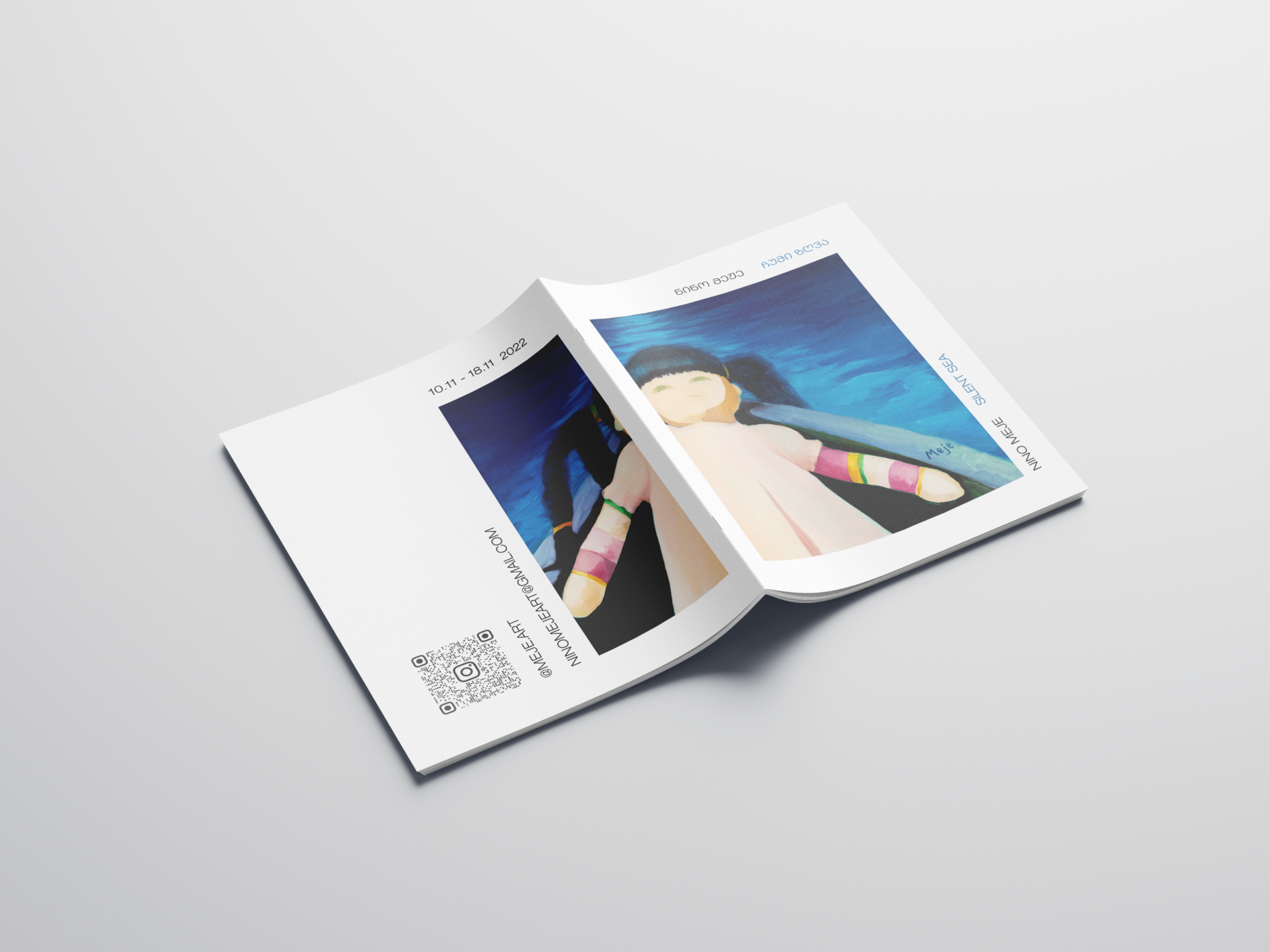 Working closely with the artist, I developed a clean and restrained layout that allowed the prints to breathe and take focus. The color palette was chosen to complement the works without distraction. To enhance viewer interaction, I integrated a QR code linking directly to the artist’s online presence, creating a seamless bridge between physical and digital experience.